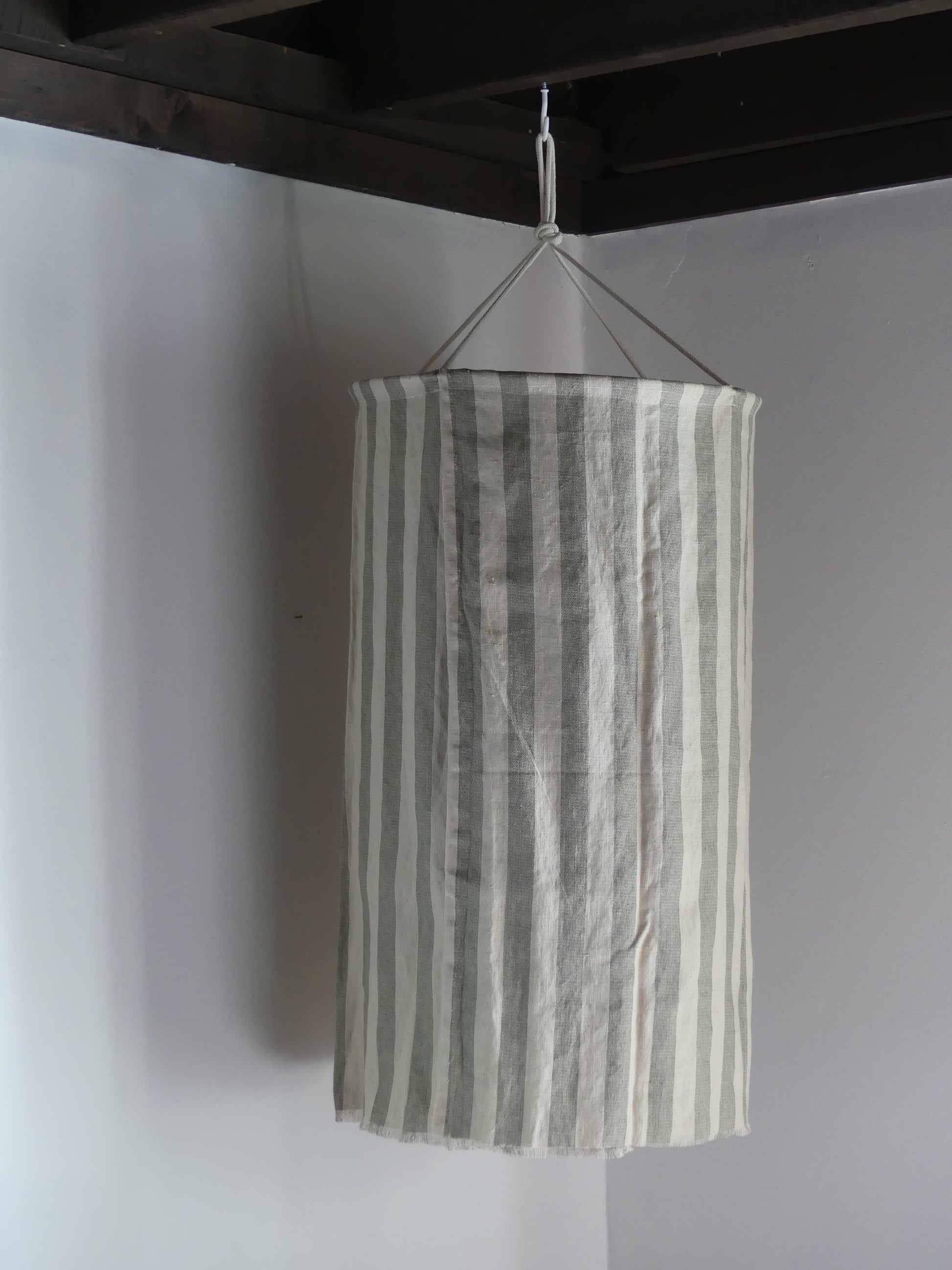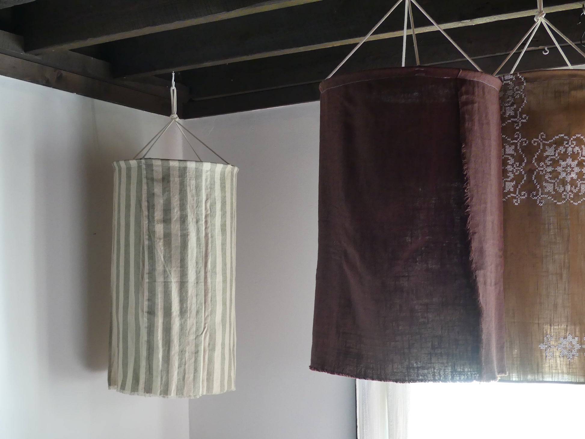 Handmade fabric lantern shade, the simplest of designs to give maximum effect. A perfect balance of rustic charm and modern minimalism, bringing a soft, organic feel to your space while diffusing light gently for a warm, cozy ambiance adding a touch of understated elegance to any room. This versatile lantern makes a beautiful addition to any space, whether as a statement piece over a dining table, a cozy reading nook, or as a bedside pendant for a warm, textured aesthetic. Clustered in a grouping of three they add a dramatic effect to any dining room, entrance, or curved staircase. Each lantern will have a slightly organic shape due to the nature of the fabric. Handcrafted from repurposed linen and linen mixes so each is unique.